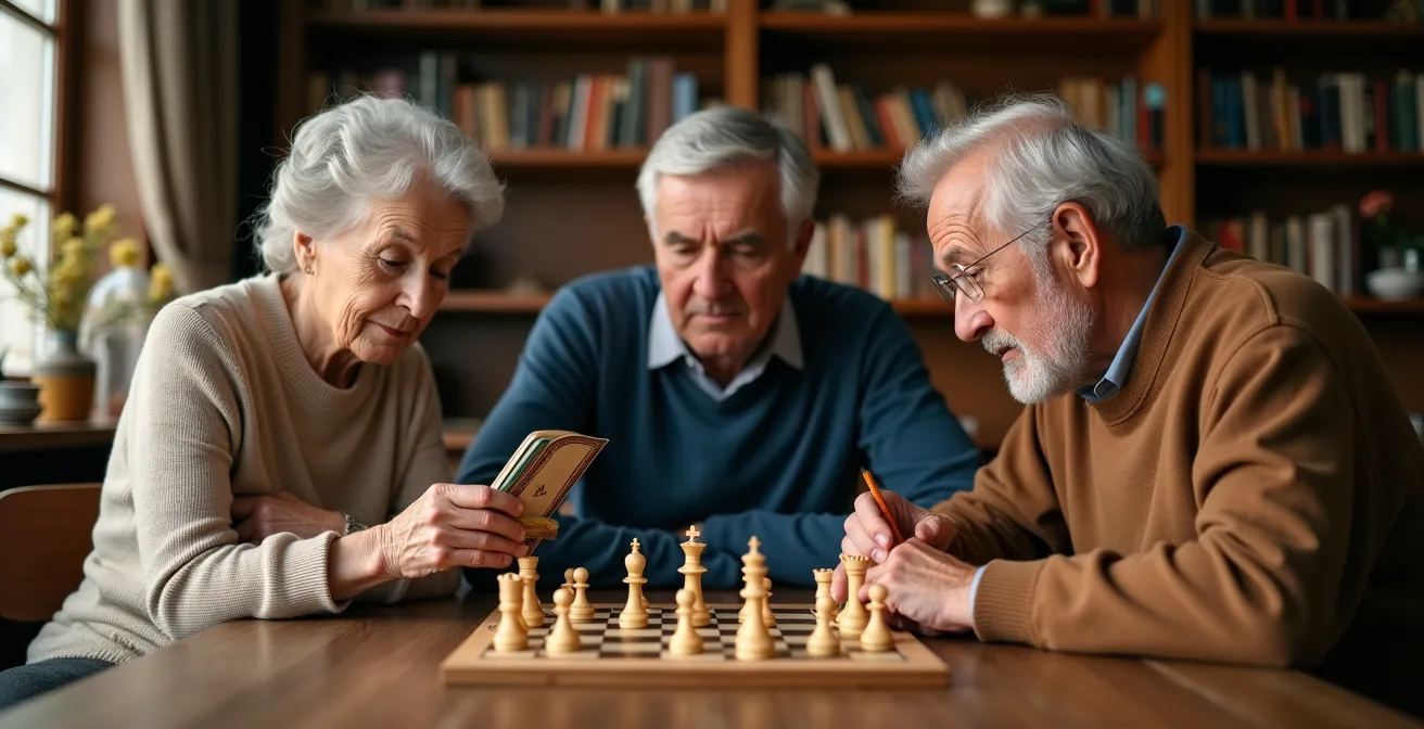 Cette stimulation sociale régulière est un puissant antidote à l’isolement, un facteur de risque majeur pour le déclin cognitif et la dépression chez les seniors. Le simple fait de devoir expliquer son raisonnement, de débattre d’une stratégie ou de célébrer une victoire en équipe crée un environnement enrichissant qui va bien au-delà du jeu lui-même. Des études scientifiques ont d’ailleurs montré jusqu’à 46% de réduction des risques de troubles cognitifs chez les personnes âgées maintenant une stimulation cérébrale régulière, où le lien social joue un rôle prépondérant.